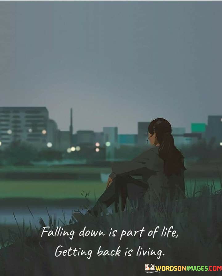 This quote speaks to the inevitability of facing setbacks and challenges in life. In the first paragraph, "falling down is part of life," the quote acknowledges that encountering difficulties and stumbling is a natural part of the human experience. It reflects the idea that no one is immune to obstacles, mistakes, or failures.