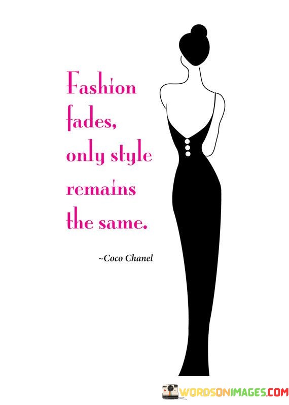This quote, attributed to legendary fashion designer Coco Chanel, speaks to the enduring nature of personal style in contrast to the ever-changing trends in the fashion world.