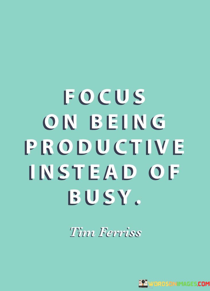 In essence, the quote urges a shift in mindset from appearing busy to achieving genuine productivity. It underscores the value of purpose-driven actions, optimizing time and effort for meaningful outcomes, ultimately enhancing personal and professional fulfillment.
