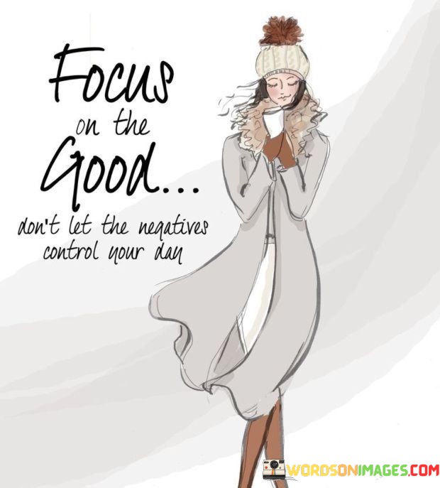 The phrase underscores the concept of mindset and perspective. It implies that choosing to focus on the positive can lead to a more constructive and fulfilling day.