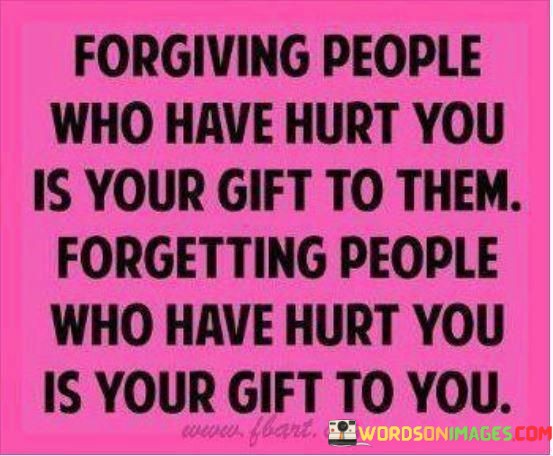 The quote highlights the value of forgiveness. It suggests that forgiving those who have harmed you is a generous act toward them. It reflects the capacity to let go of resentment and promote healing, benefiting both parties involved by fostering understanding and growth.
