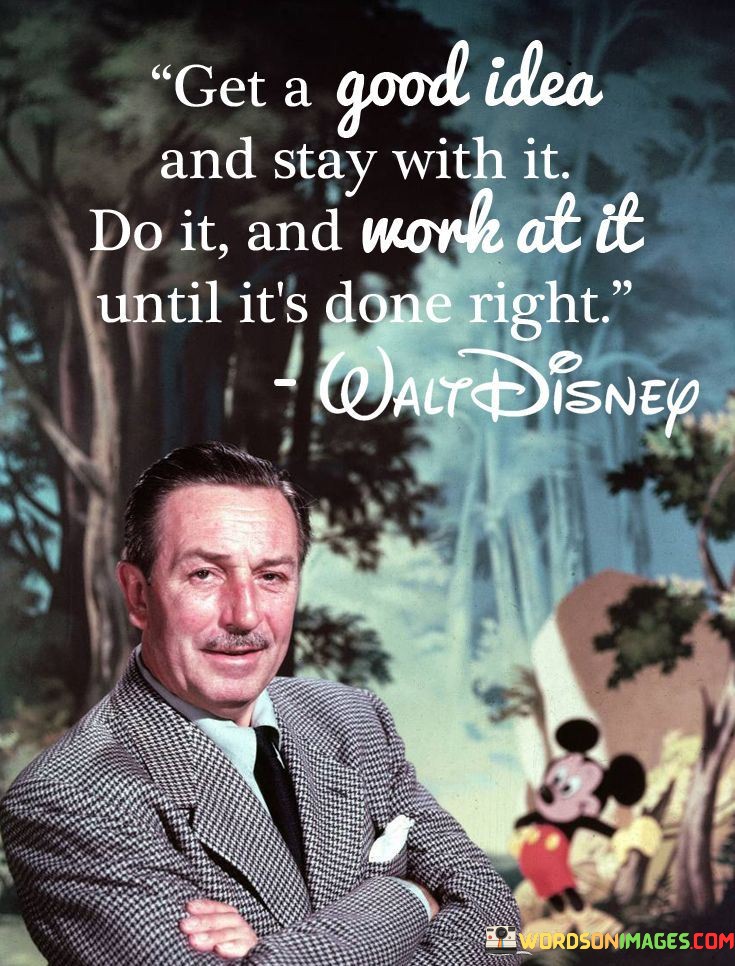 This quote emphasizes the importance of finding a good idea or a worthy goal and dedicating oneself to it wholeheartedly. It encourages perseverance and continuous effort until the task is completed to the best possible standard.