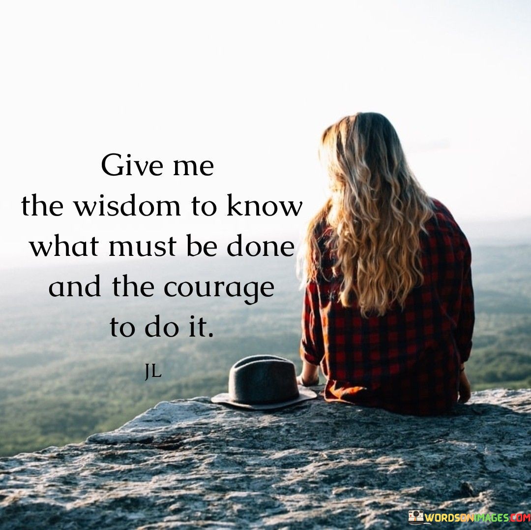 This quote is a plea for guidance and strength to make wise decisions and take action. "Give me the wisdom to know what must be done" expresses the desire for discernment and understanding when faced with choices and challenges.