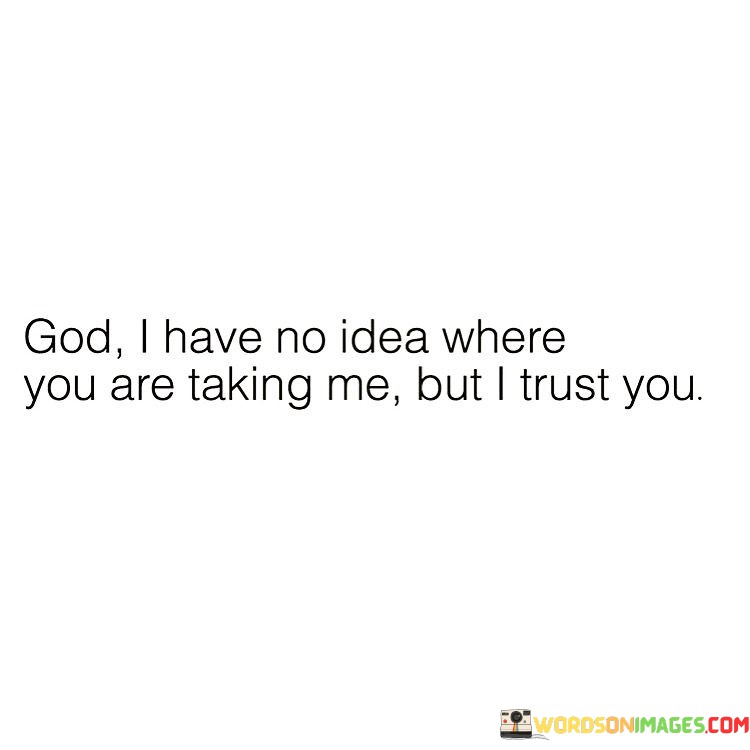 This quote conveys a message of trust and surrender to God's plan, even in the face of uncertainty. In a single sentence, it suggests that the speaker may not know the destination of their journey, but they trust in God's guidance.