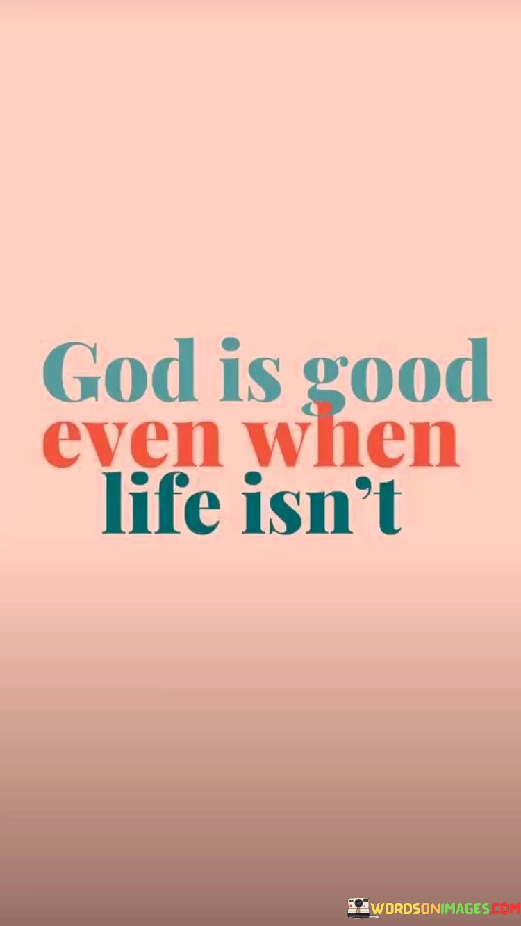 The quote "God Is Good Even When Life Isn't" encapsulates a profound perspective on faith and spirituality. It suggests that, regardless of the hardships and challenges we may encounter in life, the goodness and benevolence of a higher power remain constant.