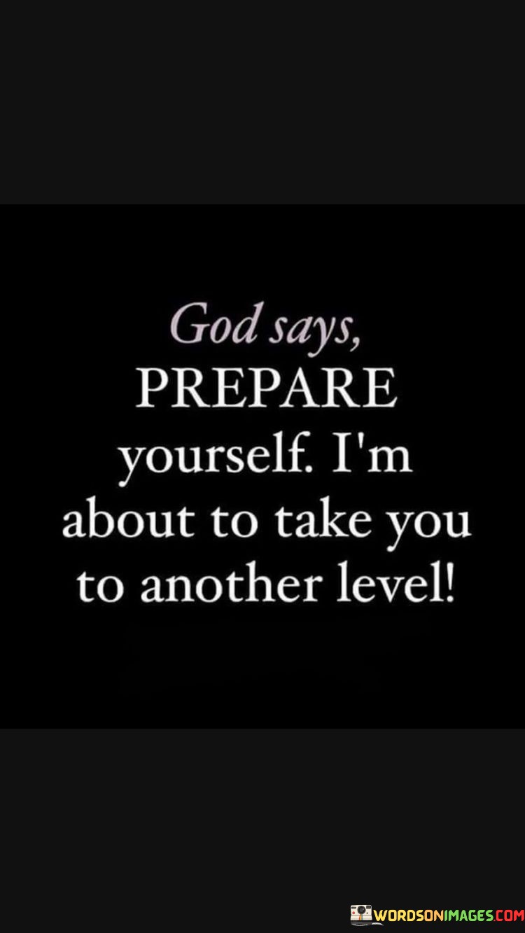 In the final 50-word paragraph, the quote serves as a reminder of the importance of embracing opportunities for growth and change. It encourages individuals to heed God's call for preparation, knowing that it may lead to a higher level of fulfillment and purpose in their lives. This quote encapsulates the belief in divine guidance and the need for readiness in one's journey of personal and spiritual development.