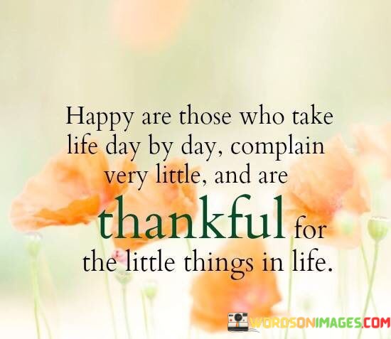 This statement extols the virtues of a content and positive mindset. It praises those who approach life with a day-by-day attitude, refrain from excessive complaining, and find gratitude in life's small joys. This perspective emphasizes the power of mindfulness, resilience, and appreciation for the simple pleasures.