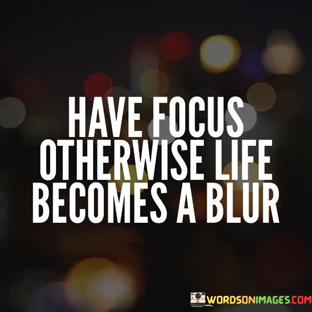 The second paragraph could delve into how losing focus can lead to a lack of direction and purpose. Without a clear sense of direction, life can indeed become a blur of experiences, decisions, and emotions. This quote suggests that having a focused mindset enables individuals to make intentional choices and take decisive actions, ultimately contributing to a more meaningful and fulfilling life.