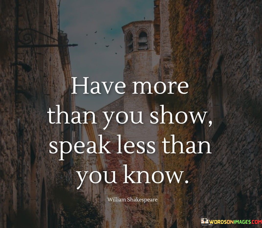 This quote advocates for a balanced approach to self-presentation and communication. The first paragraph conveys the message that it's beneficial to possess more knowledge, skills, or accomplishments than one openly displays. "Have more than you show" encourages individuals to cultivate depth and substance that extends beyond what they openly reveal to others.