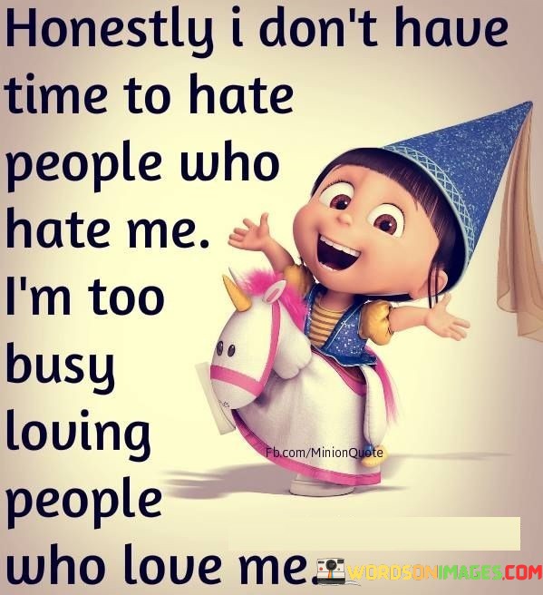 Absolutely! This statement reflects the prioritization of positive relationships over dwelling on negativity. In the first paragraph, it means that the speaker doesn't want to invest their time and energy in hating those who dislike them.