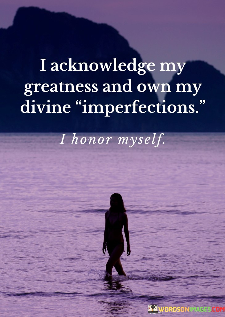 Ultimately, the quote combines self-assuredness with humility. It encapsulates the balance between recognizing one's strengths and embracing human frailties. This approach fosters self-love and authenticity while embracing the uniqueness of being imperfectly perfect.