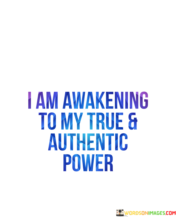 The quote reflects a profound realization and personal transformation. "I am awakening to my true and authentic power" suggests that the person has undergone a significant process of self-discovery and growth. They have come to recognize their innate strength, potential, and authenticity.