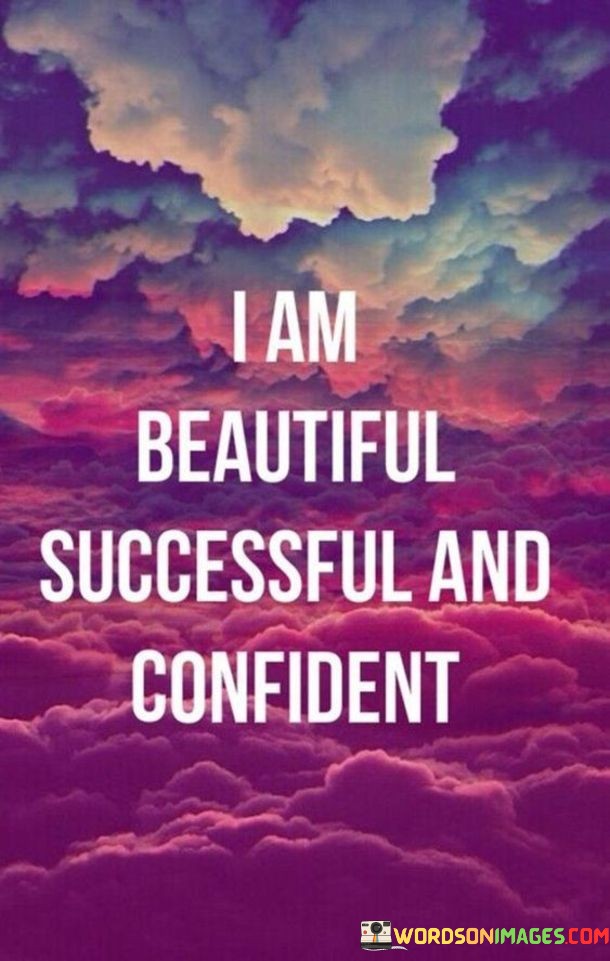 In essence, this phrase encapsulates the idea that the individual affirms their qualities of beauty, success, and confidence. It reflects the importance of fostering a positive self-image and embracing one's strengths and accomplishments.