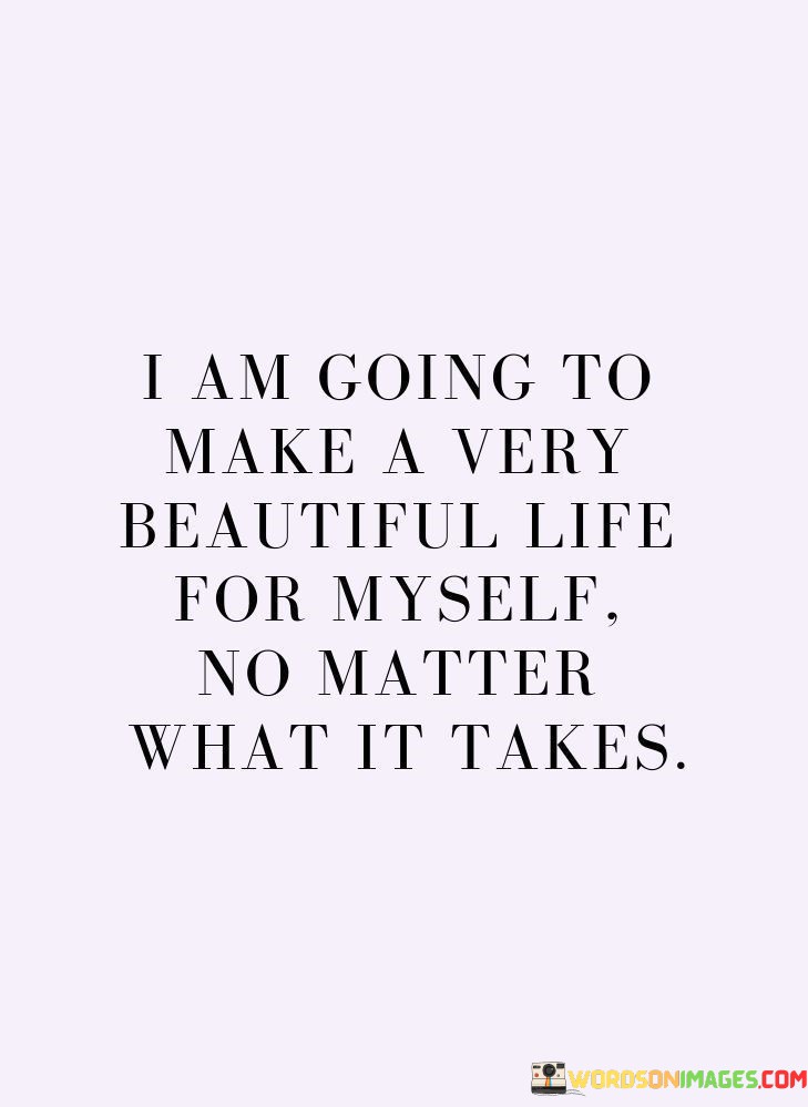 The quote reflects a strong determination to craft a fulfilling and satisfying life, regardless of challenges. In the first paragraph, "i am going to make a very beautiful life for myself" expresses a resolute intention to create a life that is not only successful but also aesthetically and emotionally enriching.