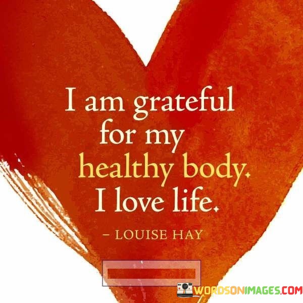 The quote emphasizes the connection between gratitude and vitality. Being grateful for a healthy body promotes a sense of contentment and recognition of the gift of good health. This gratitude can influence your approach to life, encouraging you to make the most of your physical well-being.