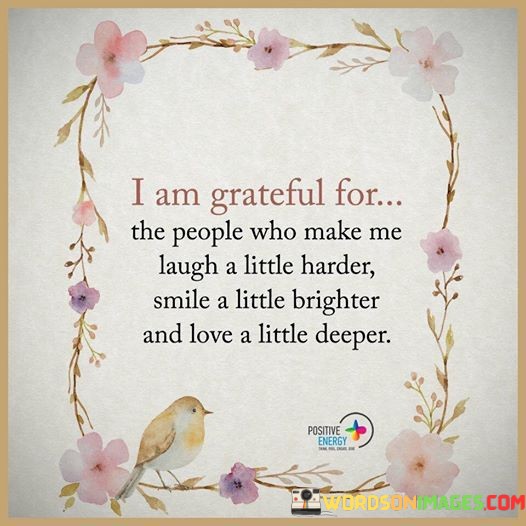 In essence, this quote encapsulates the essence of gratitude for those who enrich life's tapestry. It underlines the significance of shared moments that elicit genuine joy and love, highlighting the importance of cherishing the bonds that enhance our emotional well-being and make life more vibrant.