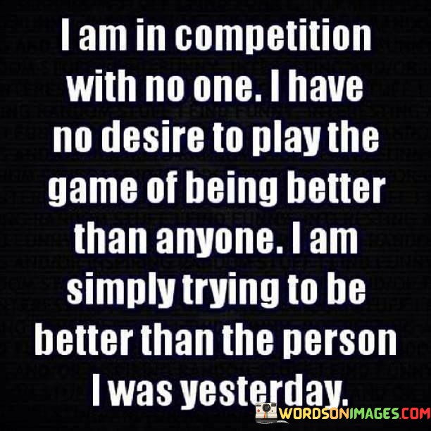 The quote beautifully emphasizes the essence of self-improvement and personal growth. It conveys the idea that true competition lies within oneself rather than against others. The focus is on becoming a better version of oneself each day, not trying to outdo or surpass others.