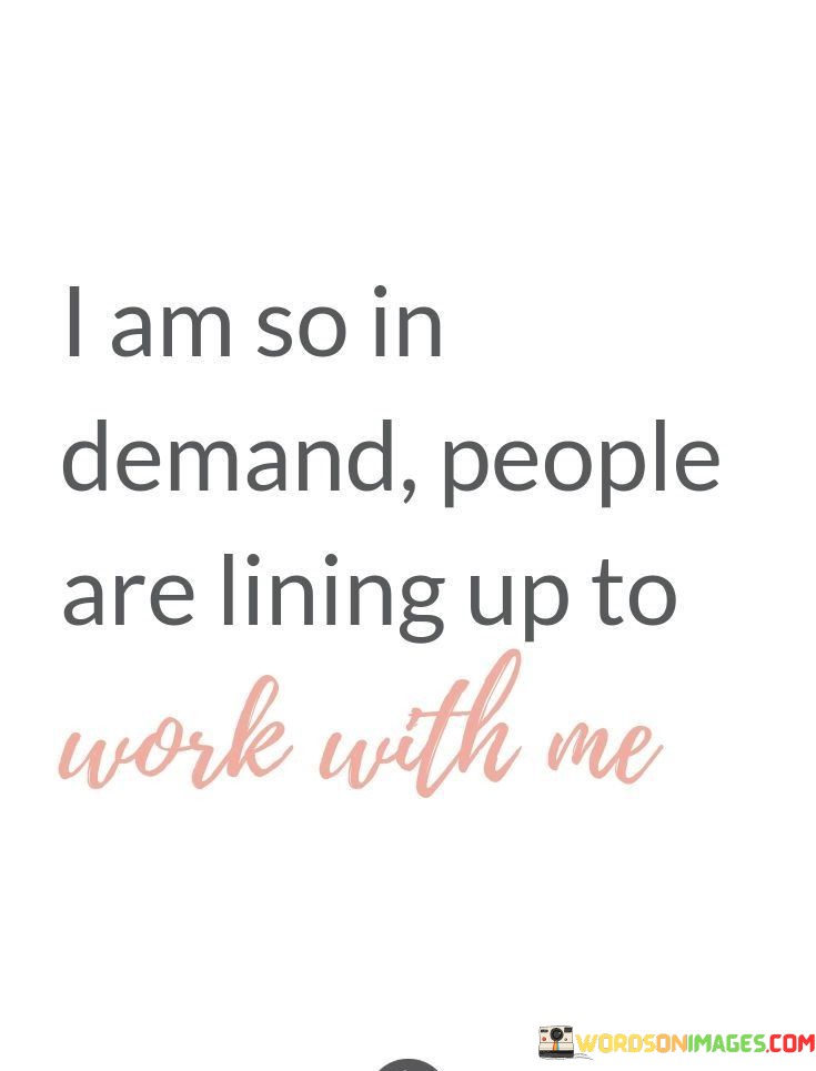 This quote conveys a sense of confidence and self-assuredness. In the quote, it suggests that the individual is highly sought after and valued by others, to the extent that people are eager to collaborate or work with them.