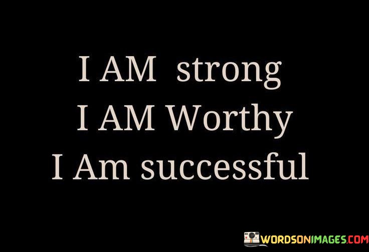 The quote "I Am Strong I Am Worthy I Am Successful" encapsulates a powerful affirmation of self-worth and empowerment. In the first segment, "I Am Strong," the speaker acknowledges their inner strength, emphasizing resilience in the face of challenges. This assertion encourages a positive mindset to tackle difficulties head-on.