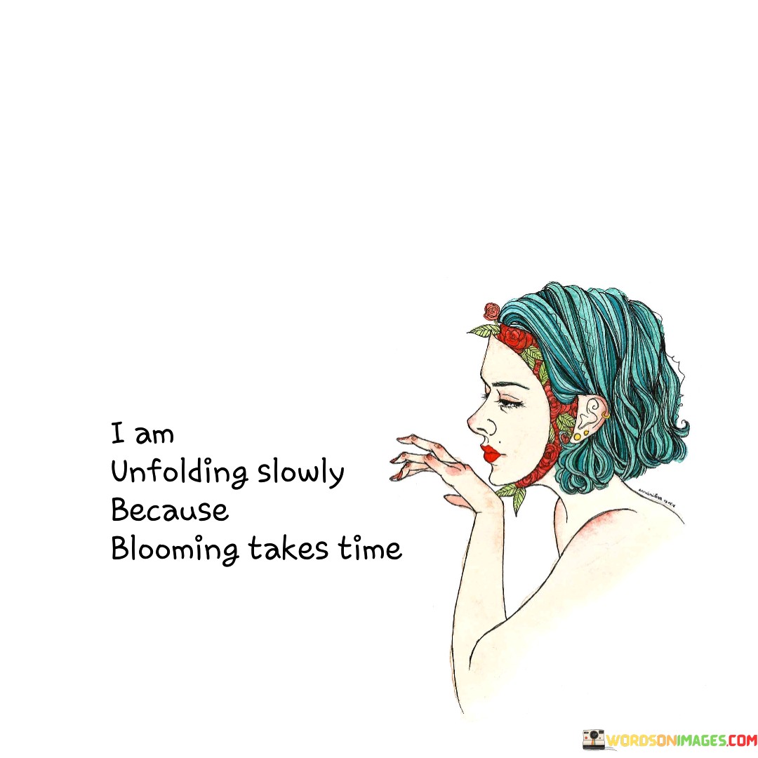 This expression conveys the idea of gradual growth and self-discovery. It suggests that personal transformation and reaching one's full potential require patience and a deliberate unfolding process.