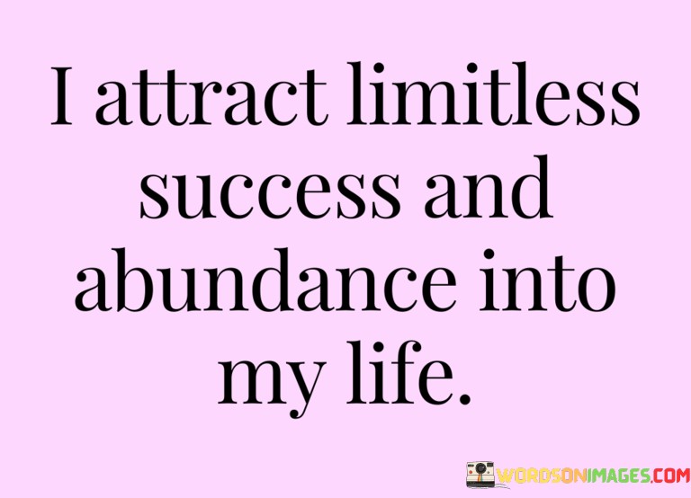 This affirmation conveys a positive mindset and intention. It suggests that the individual is open to receiving boundless success and prosperity, implying a belief in the power of positive thinking and manifestation.