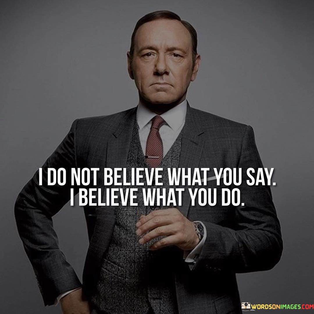 By highlighting the power of actions, the quote serves as a reminder to be mindful of the consistency between what one says and what one does. It encourages individuals to be genuine and sincere in their actions, reinforcing the idea that actions are a true reflection of one's beliefs and values. Ultimately, this quote promotes the importance of integrity and congruence between words and deeds.