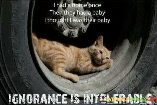 The quote depicts the shifting dynamics in relationships. "Had a home once" signifies belonging. "They had a baby" implies a change. "Thought I was their baby" reflects a sense of displacement. The quote conveys the emotional impact of feeling replaced in a relationship.