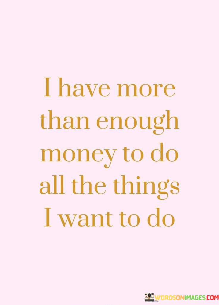 This quote expresses a sense of financial abundance and the ability to fulfill one's desires. In the quote, it suggests that the individual possesses a surplus of money that allows them to pursue all the activities and goals they wish to achieve.