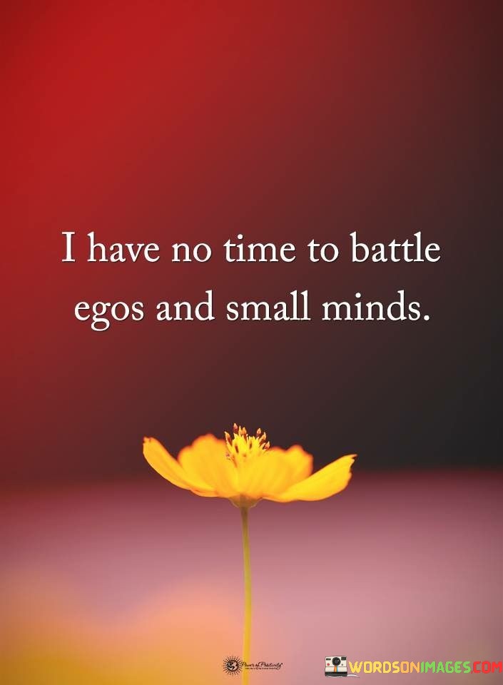 This statement conveys a desire to avoid unnecessary conflicts and engage in meaningful pursuits. In the first paragraph, it means that the speaker doesn't want to waste their time and energy on arguments with egotistical and narrow-minded individuals.