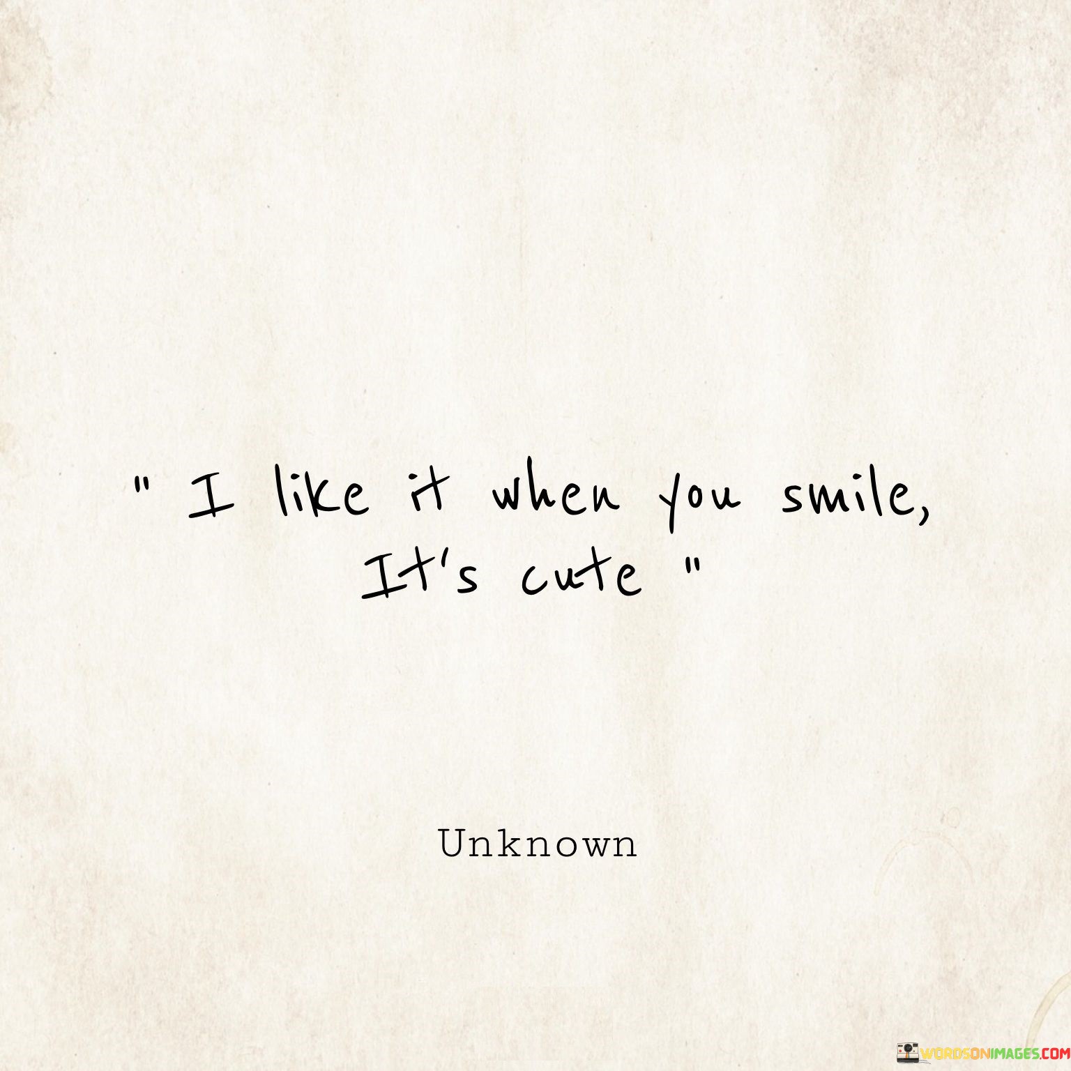 The quote affectionately acknowledges the appeal of someone's smile. "I like it when you smile; it's cute" expresses a genuine fondness for the person's cheerful expression.