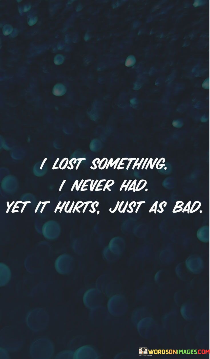 The quote captures the paradox of emotional pain. "Lost something I never had" signifies an unrealized connection. "Hurts just as bad" emphasizes the depth of pain. The quote conveys the intensity of emotions tied to unfulfilled expectations.