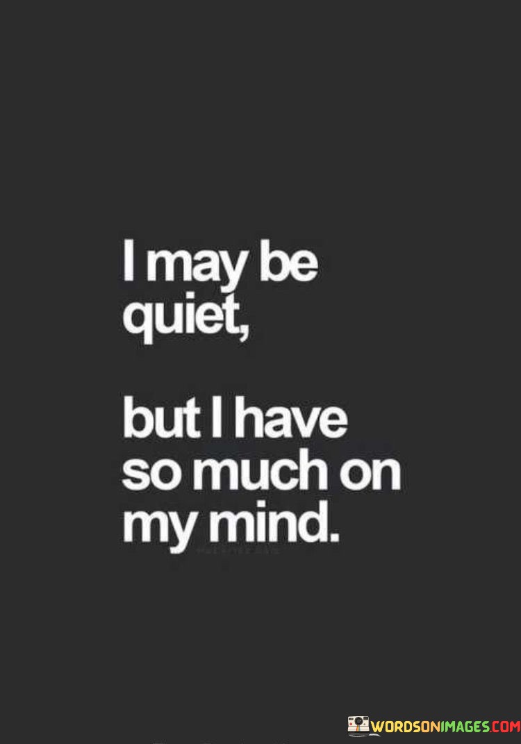 The quote "I may be quiet, but I have so much on my mind" speaks to the depth of inner thoughts and emotions. It suggests that outward silence doesn't necessarily indicate a lack of activity within the mind.
