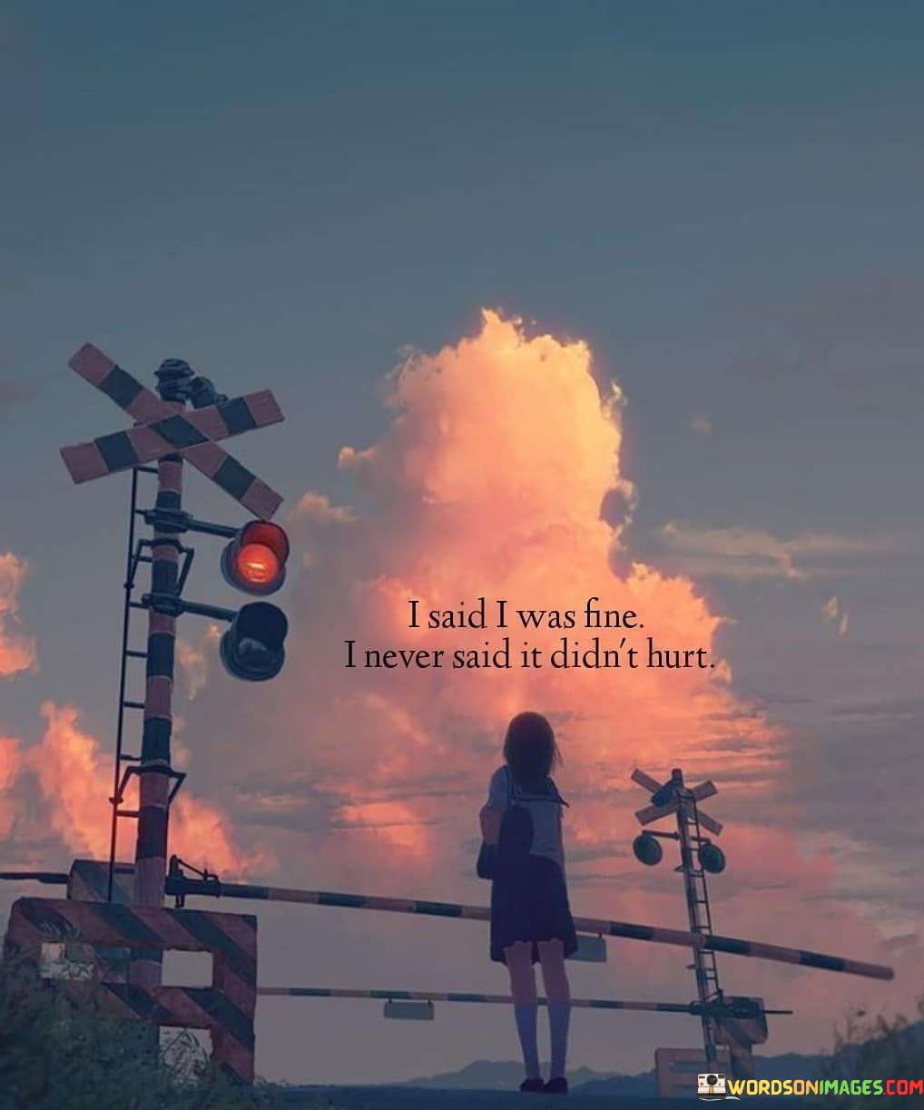 The quote "I Said I Was Fine, I Never Said It Didn't Hurt" reflects the common experience of concealing emotional pain behind a facade of okayness.