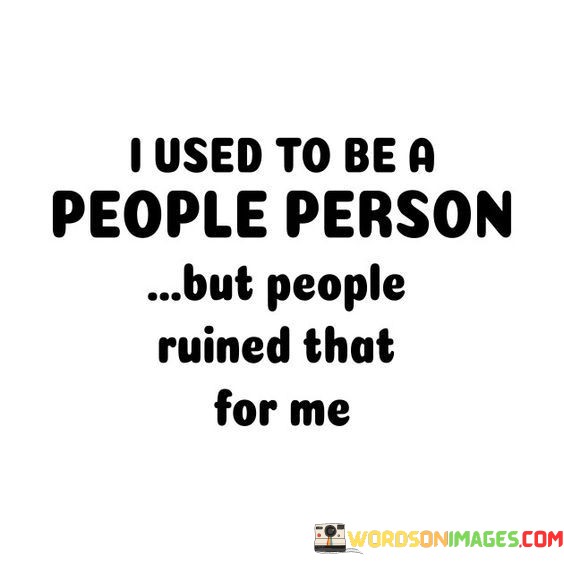 The quote reflects a change in the speaker's attitude toward people. "Used to be a people person" indicates a previous affinity for socializing. "People ruined that for me" suggests negative experiences that led to a shift in perspective.