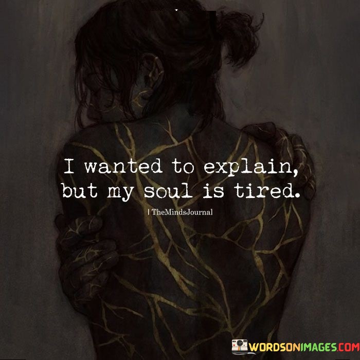 This quote conveys a deep sense of exhaustion and frustration. It suggests that the person desires to communicate their thoughts or feelings but finds themselves unable to do so because of the weariness within their very core.