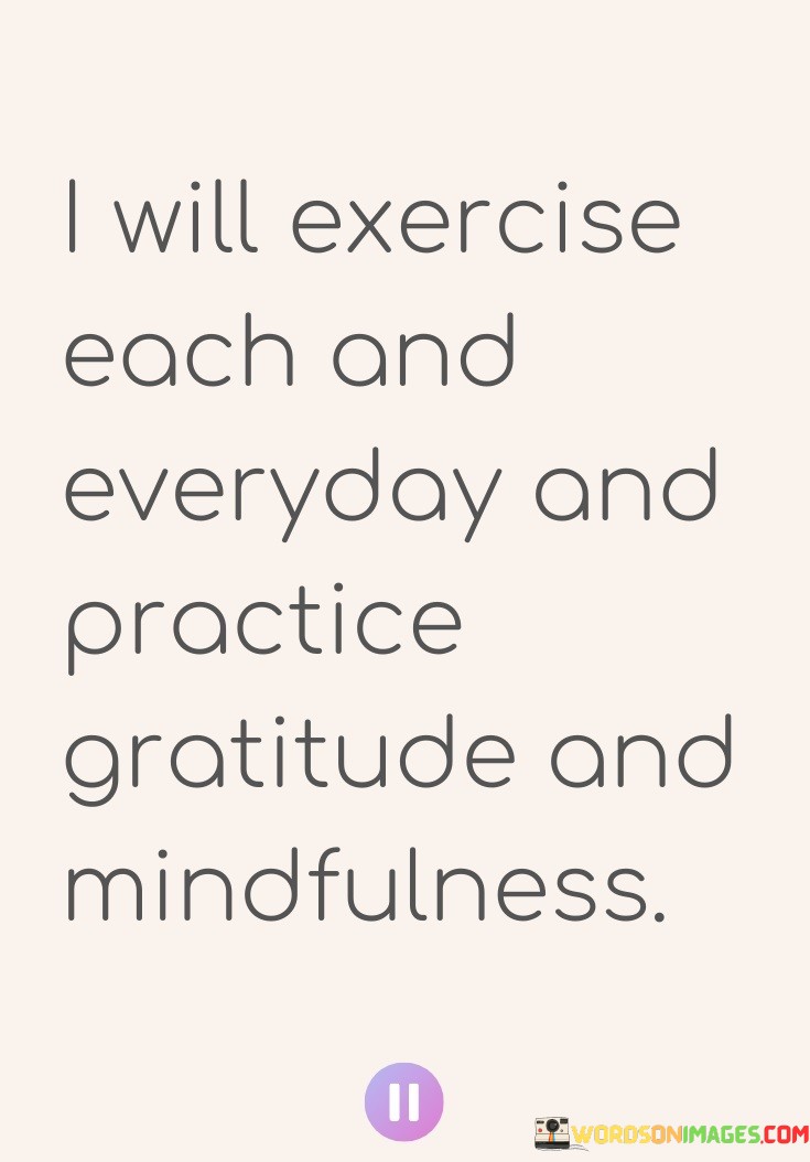 This statement outlines a proactive plan for personal growth and well-being. The commitment to daily exercise, combined with the practices of gratitude and mindfulness, reflects a holistic approach to health and mental clarity.