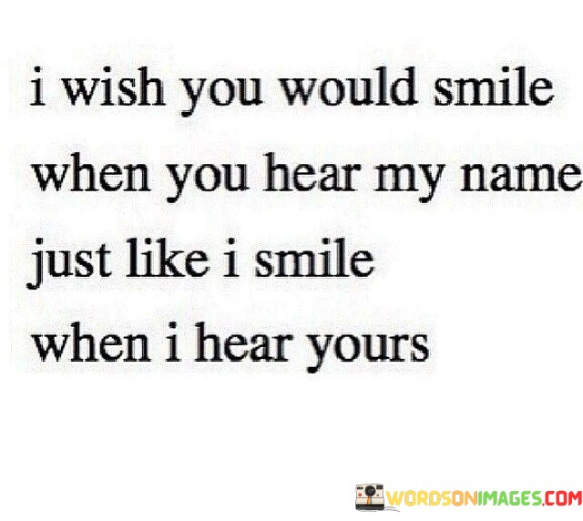 "I wish you would smile when you hear my name, just like I smile when I hear yours." This quote conveys a heartfelt desire for mutual affection and positive emotions between two individuals.