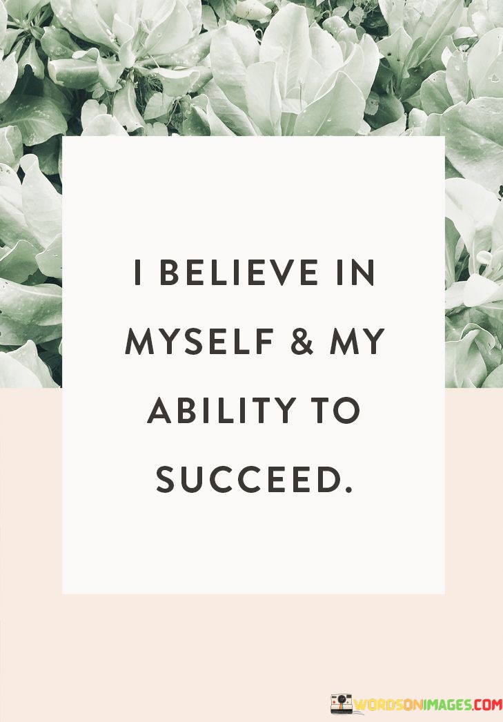 The phrase "I believe in myself, my ability to succeed" conveys a strong sense of self-confidence and determination in pursuing success.