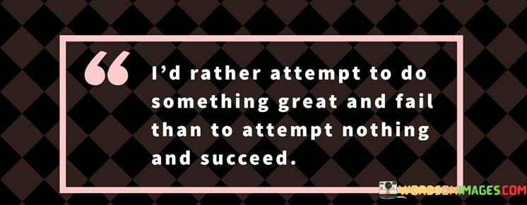 Ultimately, the quote motivates individuals to embrace challenges and pursue their aspirations boldly. It encourages them to view failure as a stepping stone towards growth and success. By choosing to attempt something great, they are likely to achieve personal development and potentially even surpass their own expectations.
