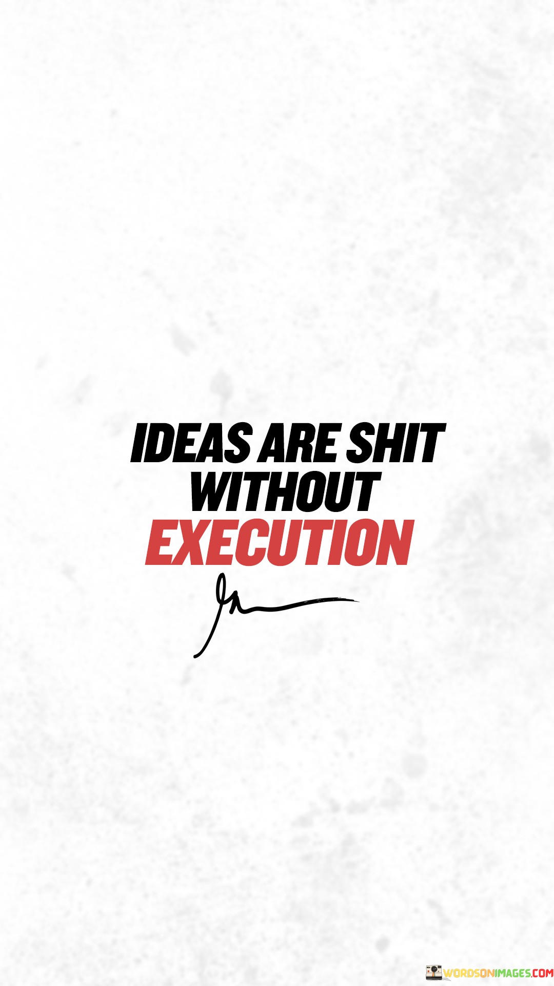This quote emphasizes the importance of taking action to turn ideas into reality. It suggests that having great ideas is not enough; their value lies in their implementation and execution.