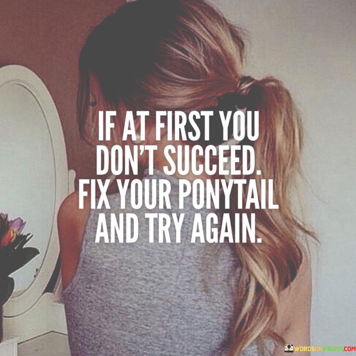 "If At First You Don't Succeed, Fix Your Ponytail and Try Again": This quote encapsulates a resilient and empowering approach to facing challenges. The initial paragraph acknowledges that failure is a possibility in any endeavor with the phrase "If at first you don't succeed." It prepares individuals for the reality that success often requires multiple attempts.