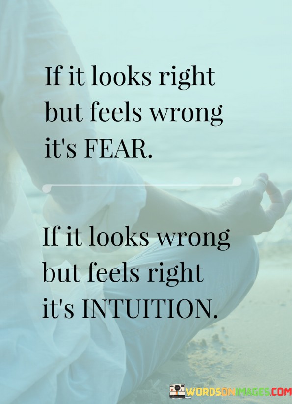 The third paragraph underscores the importance of discernment. By distinguishing between fear and intuition, one can make choices that lead to greater alignment and fulfillment. This quote encourages individuals to trust their inner feelings and instincts, rather than being swayed solely by external appearances or societal norms, ultimately fostering a sense of authenticity and personal empowerment.