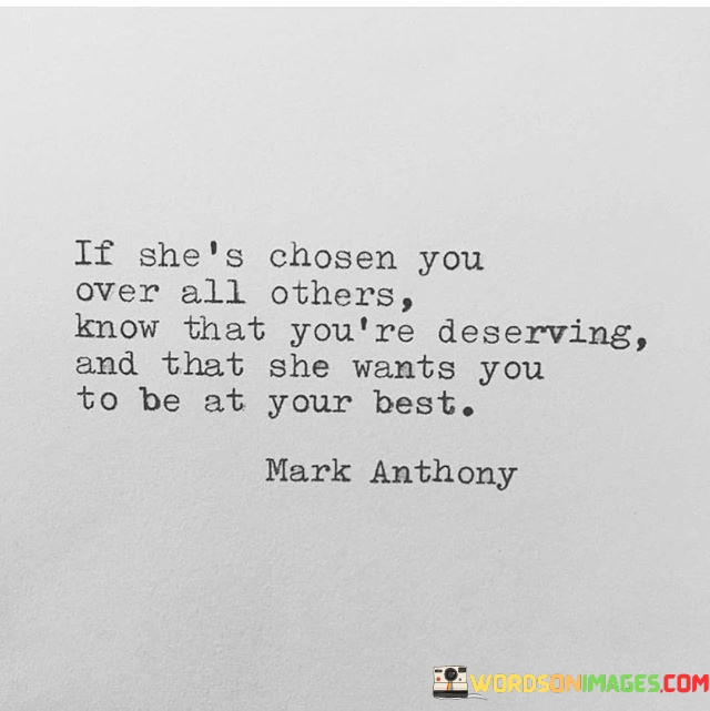 When a woman chooses one person over all others, it signifies a significant level of trust, admiration, and affection towards that individual. In this context, if she has chosen you, it's crucial to recognize your worthiness and value. Her decision to pick you implies that she sees something special in you and believes you have qualities that make you deserving of her love and attention. It is an affirmation that you hold a special place in her heart, and she desires the best for you.