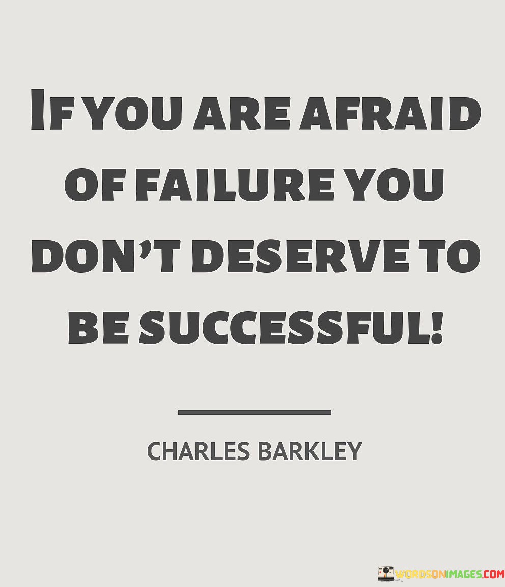 "If You Are Afraid Of Failure, You Don't Deserve to Be Successful" delivers a stern message about the role of fear and resilience in achieving success. It implies that a fear of failure can hinder the mindset and determination necessary for meaningful accomplishments.