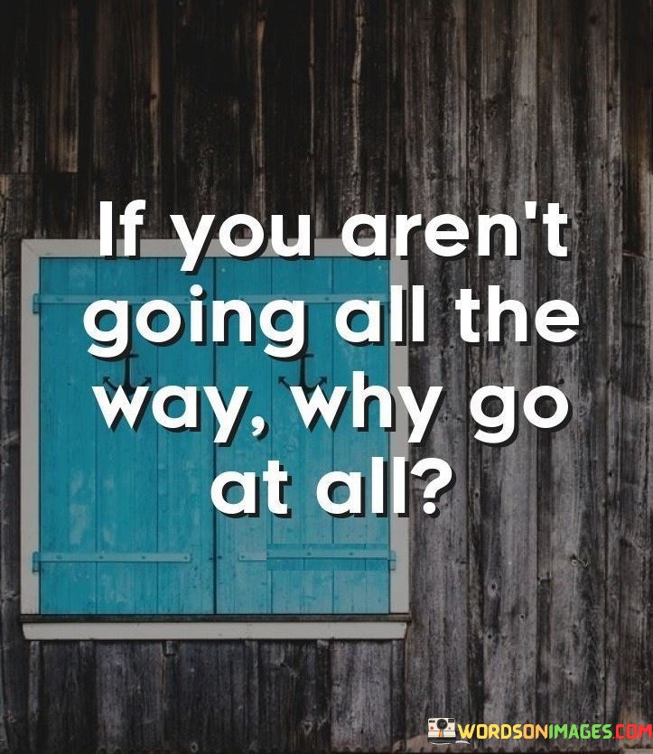 In the first paragraph, this phrase questions the purpose of partial commitment. It suggests that if one isn't fully invested in a pursuit, there's little reason to engage at all. By prompting introspection, the phrase emphasizes the value of wholehearted dedication.