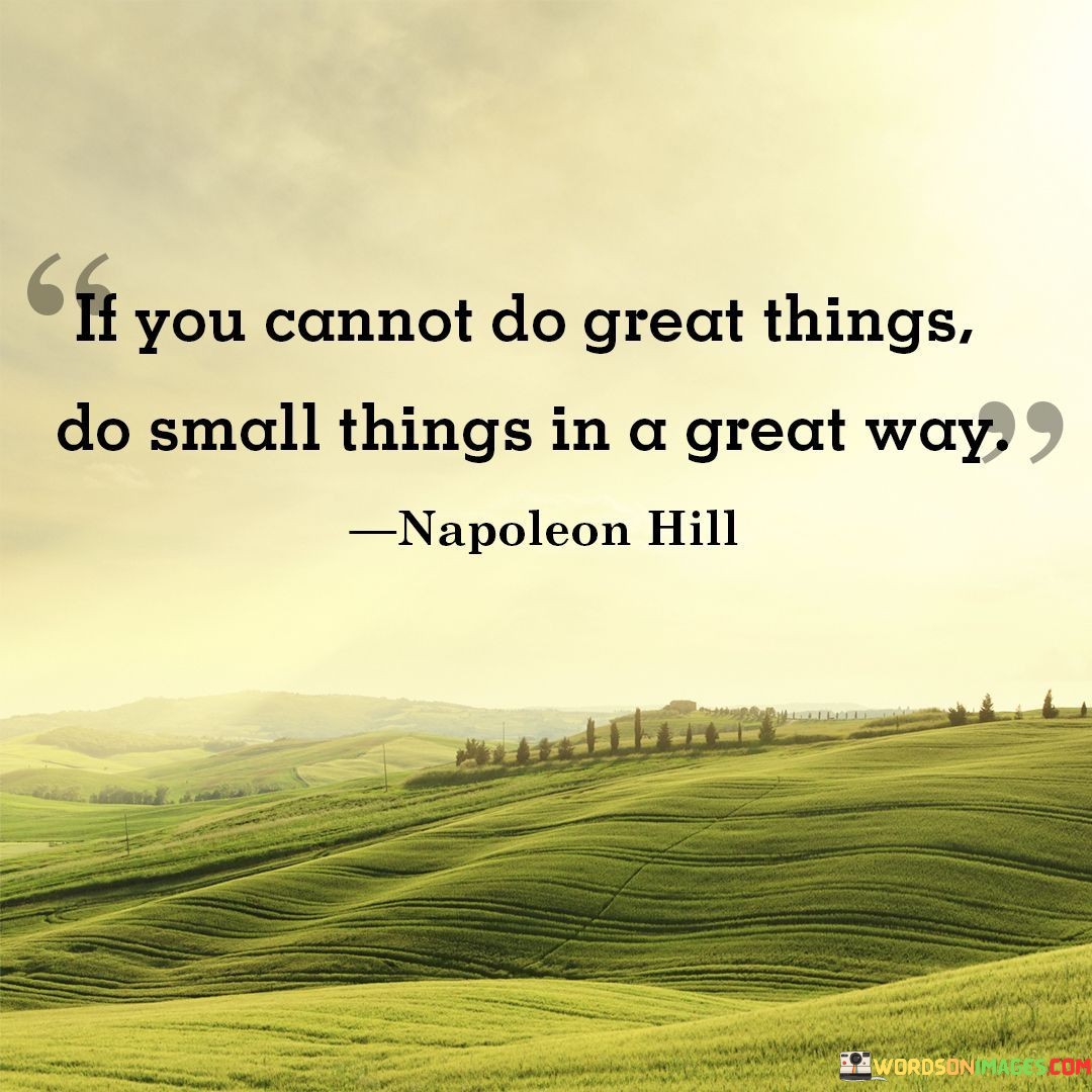 This quote encourages a perspective shift toward excellence and meaningful contribution. It suggests that if grand achievements seem out of reach, one can still make a significant impact by focusing on the quality and dedication put into even the smallest tasks.