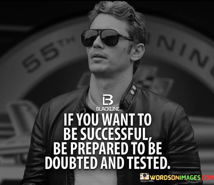 In summary, this quote serves as a reminder that the road to success may involve facing skepticism and challenges. It encourages individuals to maintain their determination, self-confidence, and resilience in the face of doubt and testing, knowing that these experiences can ultimately strengthen their path to success.
