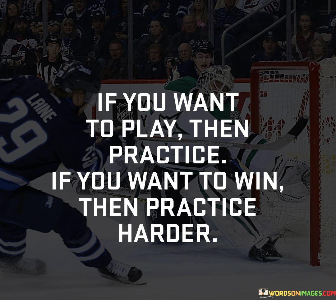 "If You Want to Play, Then Practice; If You Want to Win, THEN PRACTICE HARDER." This quote emphasizes the critical role of practice and dedication in achieving success. It highlights that participating in an activity or endeavor is just the first step, while true mastery and victory require continuous and focused practice.