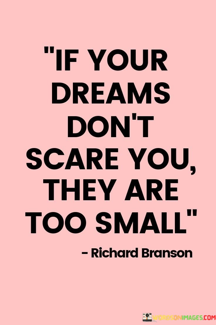 This quote underscores the importance of ambitious aspirations. In the first paragraph, it suggests that dreams should evoke fear due to their enormity. This implies that bold goals lead to growth and innovation, while overly modest dreams limit potential.