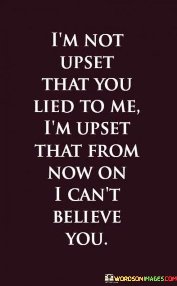 The quote captures the aftermath of deception. "Not upset that you lied" implies initial disappointment. "Can't believe you" reflects shattered trust. The quote conveys the emotional impact of losing faith in the person's honesty.